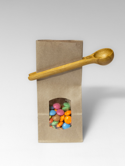 Durch den Schlitz im Stiel lassen sich mit dem Löffel Tüten verschliessen, wie mit einer Klammer. (schliesst nicht vollständig luftdicht ab)